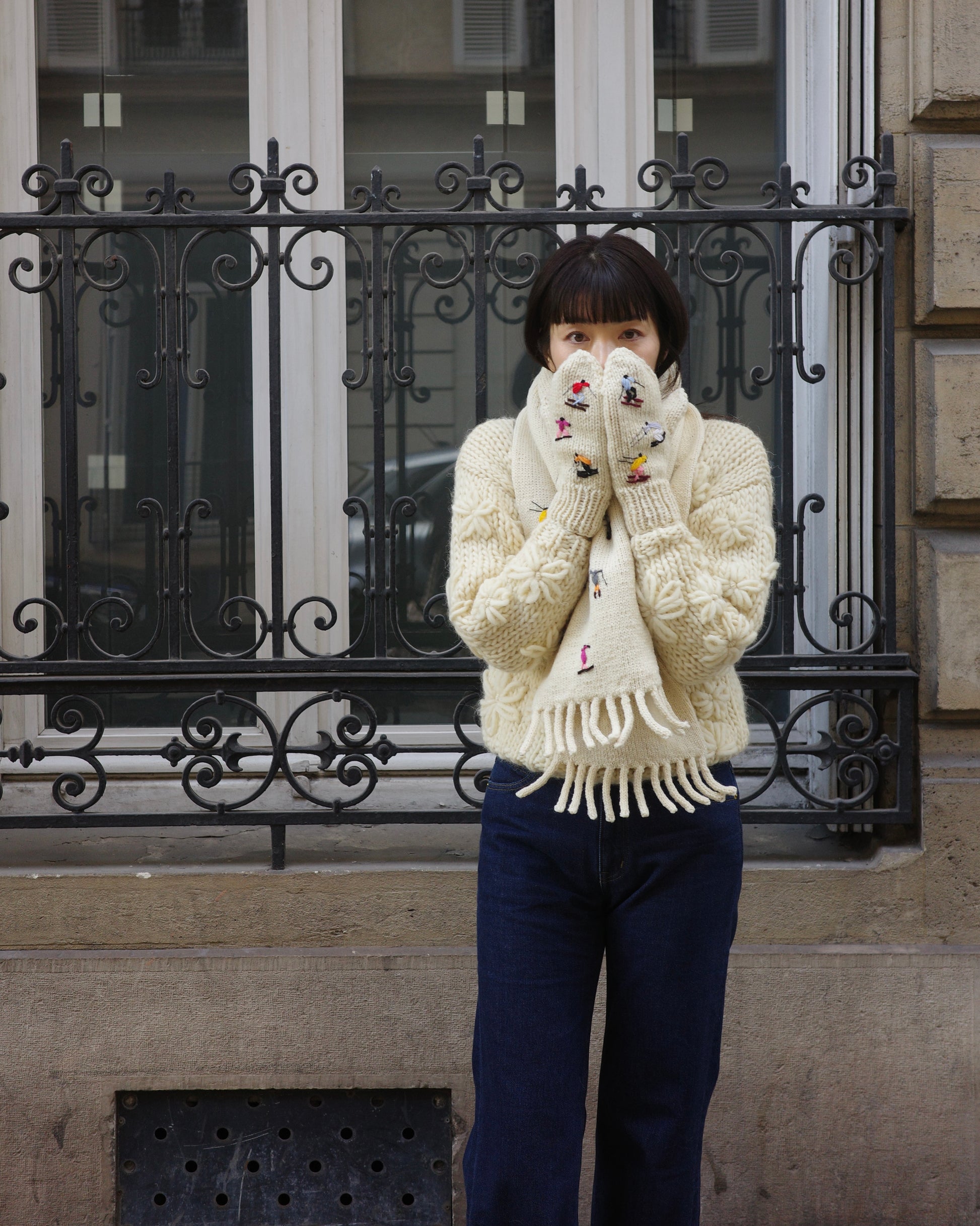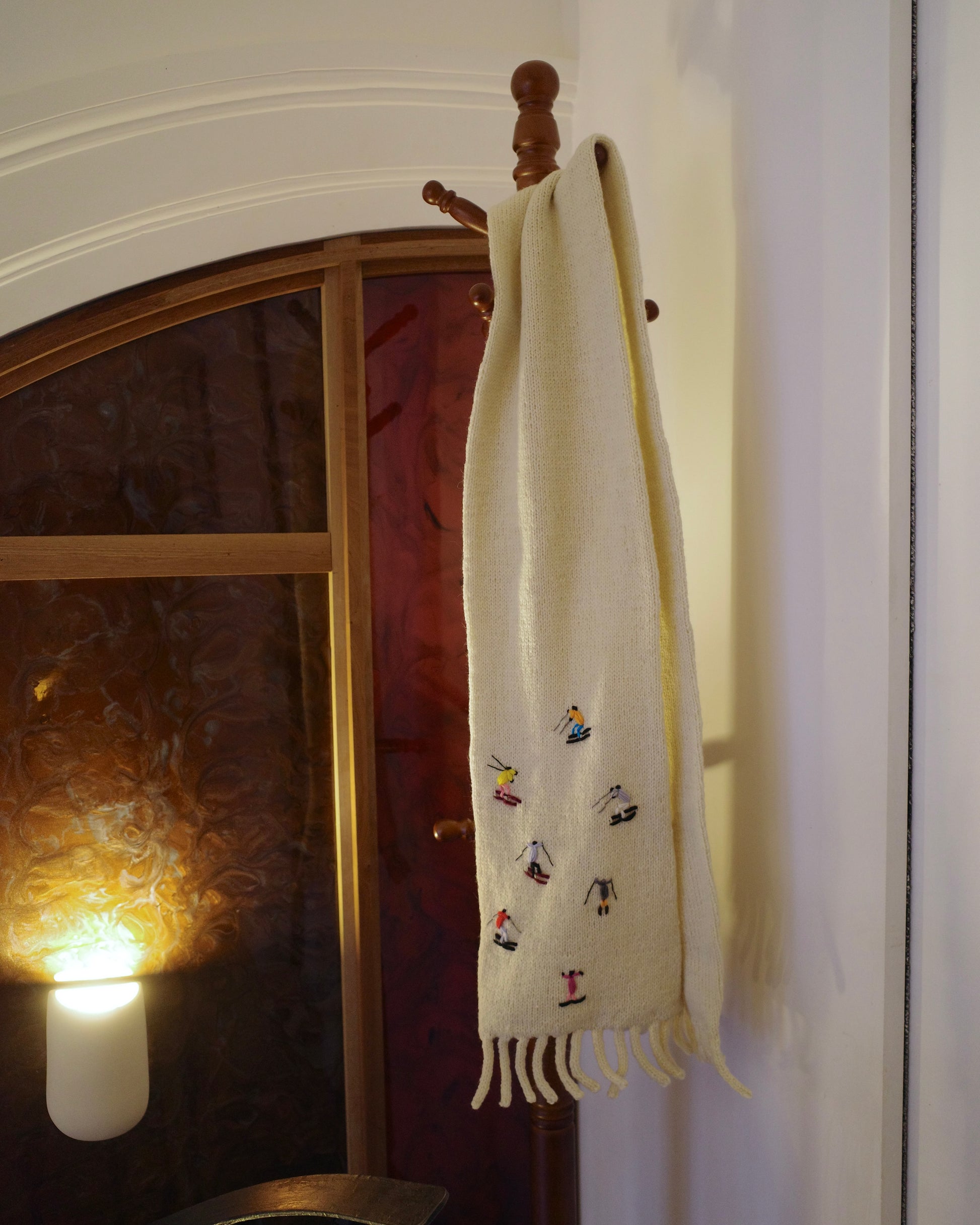 スキーヤーの刺繍が施された